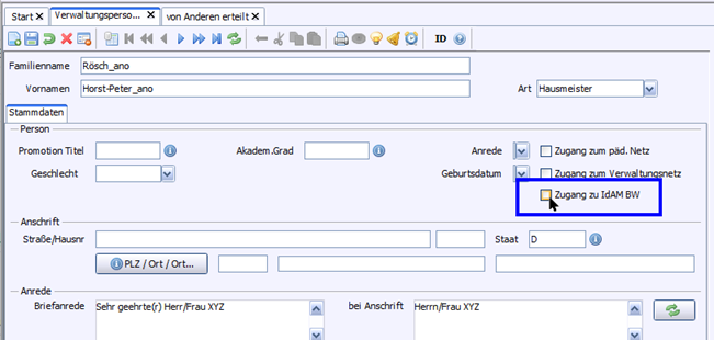 Damit die Übertragung der Daten im IdAM (Identitäts- und Accessmanagement) problemfrei funktioniert, achten Sie in ASV-BW auf die folgenden Einträge.